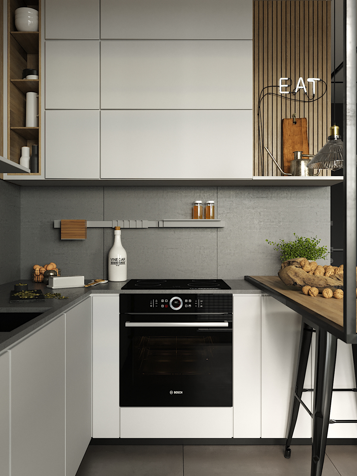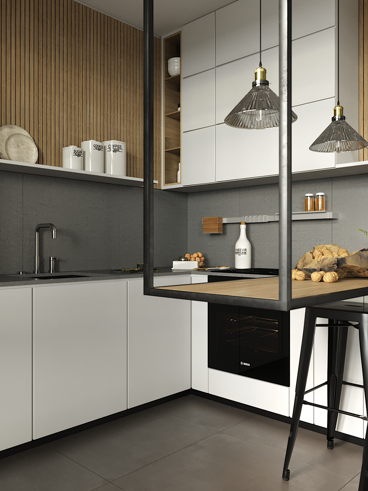 以大面积灰色作为空间的主旋律,是北欧风家装十分显著的特色。朴实有质感的灰色调,给人舒适、温馨的感觉