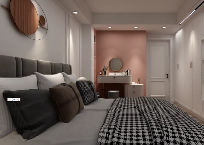 颜色搭配是卧室设计的一大亮点,考虑到卧室地板的颜色是原木色,因此在卧室颜色选择上设计师选择了蓝灰色调,与地板的颜色相近,可以很好地融为一体,在视觉上显得更加协调。