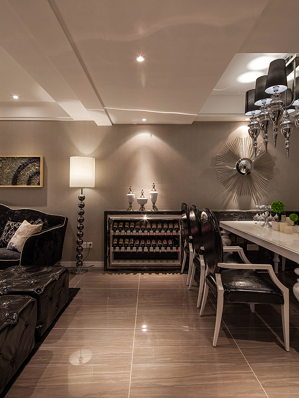 简欧风格多以象牙白为主色调,在颜色搭配方面遵从浅主深辅的原则,这种搭配可以很好的显示简欧风格的清贵和优雅。另外在用地毯、窗幔、壁纸等饰品进行装饰,既展现出欧洲传统文化的深厚底蕴,又对现代元素进行了一个吸收,简化了线条,深化了家装的实用性,整个空间质朴与简约完美的融合在了一起