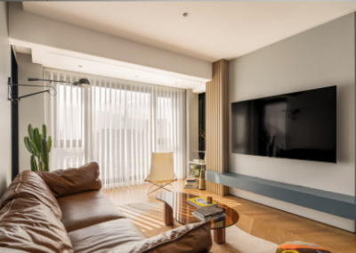 很多人钟爱小家,因为她总是平易近人,没有距离的隔阂,家人彼此贴近,温情自由流淌。 业主是热爱生活的年轻夫妻,还有一个活泼好动的男孩,嬉笑玩乐是一家子的日常写照。为此,我们在设计中加入了更活泼的色彩和装饰元素,让空间跳脱一些,灵动一些,来契合这有趣的一家人。 79㎡的家,没有拥挤,却有脉脉温情。