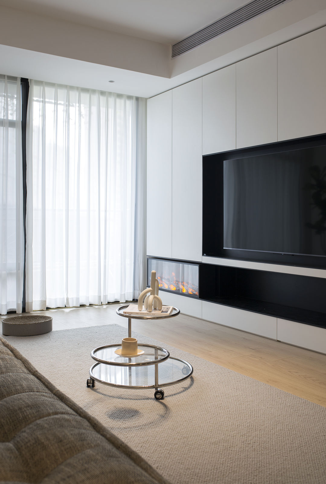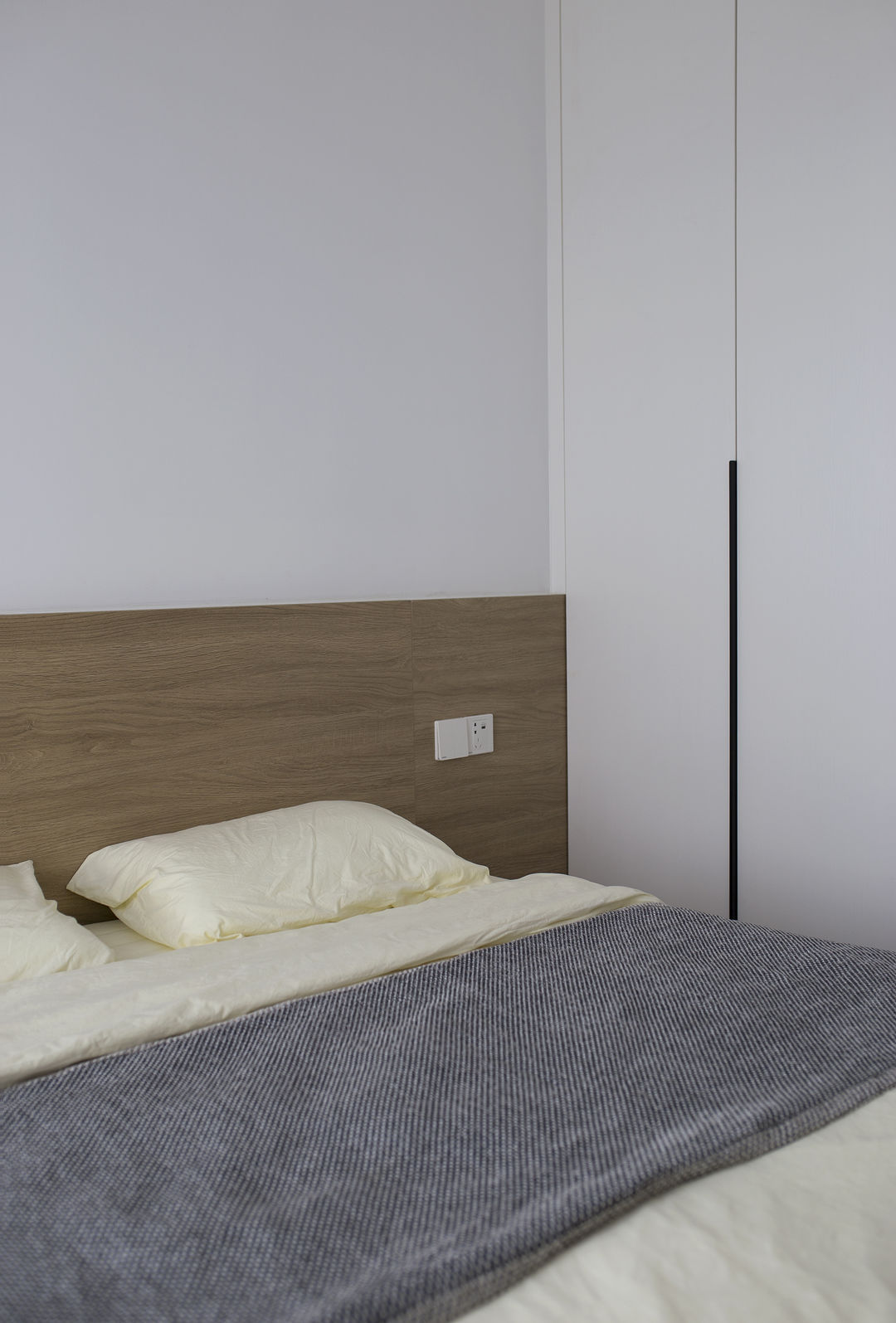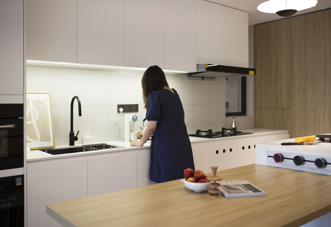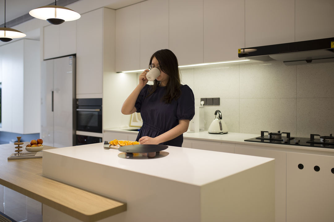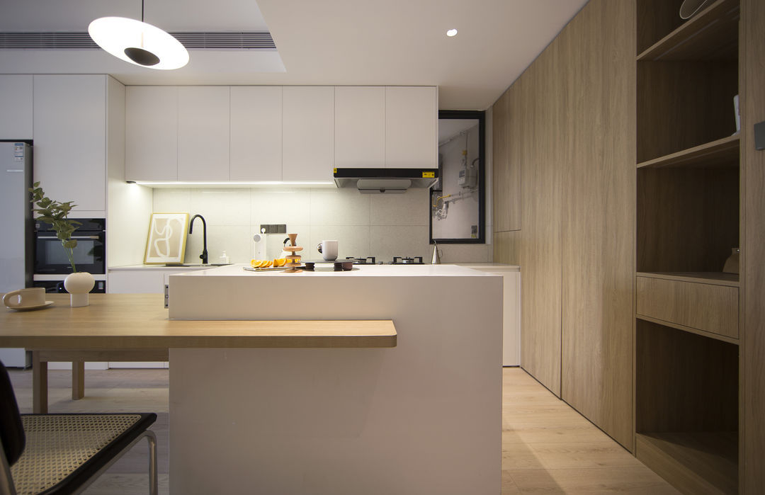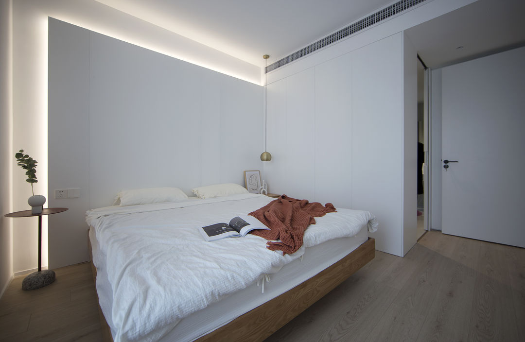 家是生活的写照: 有人认为充满烟火气的油盐酱醋是家;有人认为整齐的空间布置是家。 这是一套新婚夫妇在上海的首套小家,对新家充满了期待。他们也是拥有3位喵星人的铲屎官,这是一件多么幸福的事。 客户最初的对家的幻想就是尽可能的充斥满白色,在有限的预算情况下,大方向的调性尽量是往极简上面靠拢, 带着他们向往的设计装修之路就开始了。 设计师认为白色是兼容万物的颜色,它可以让家里的成列更为自由。 从头到尾,