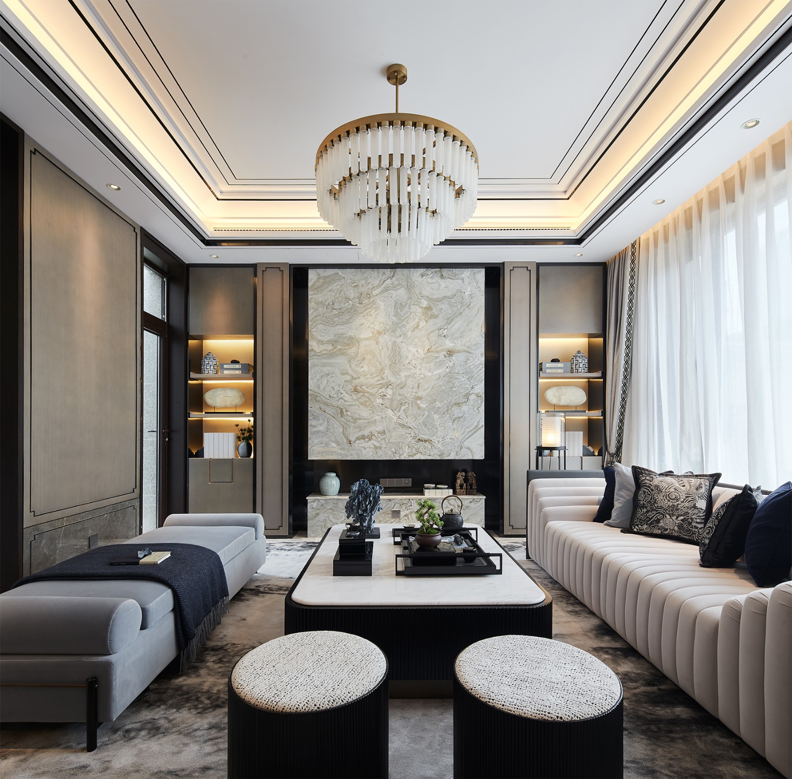194㎡轻奢风样板间,流淌宁静东方的素雅风情